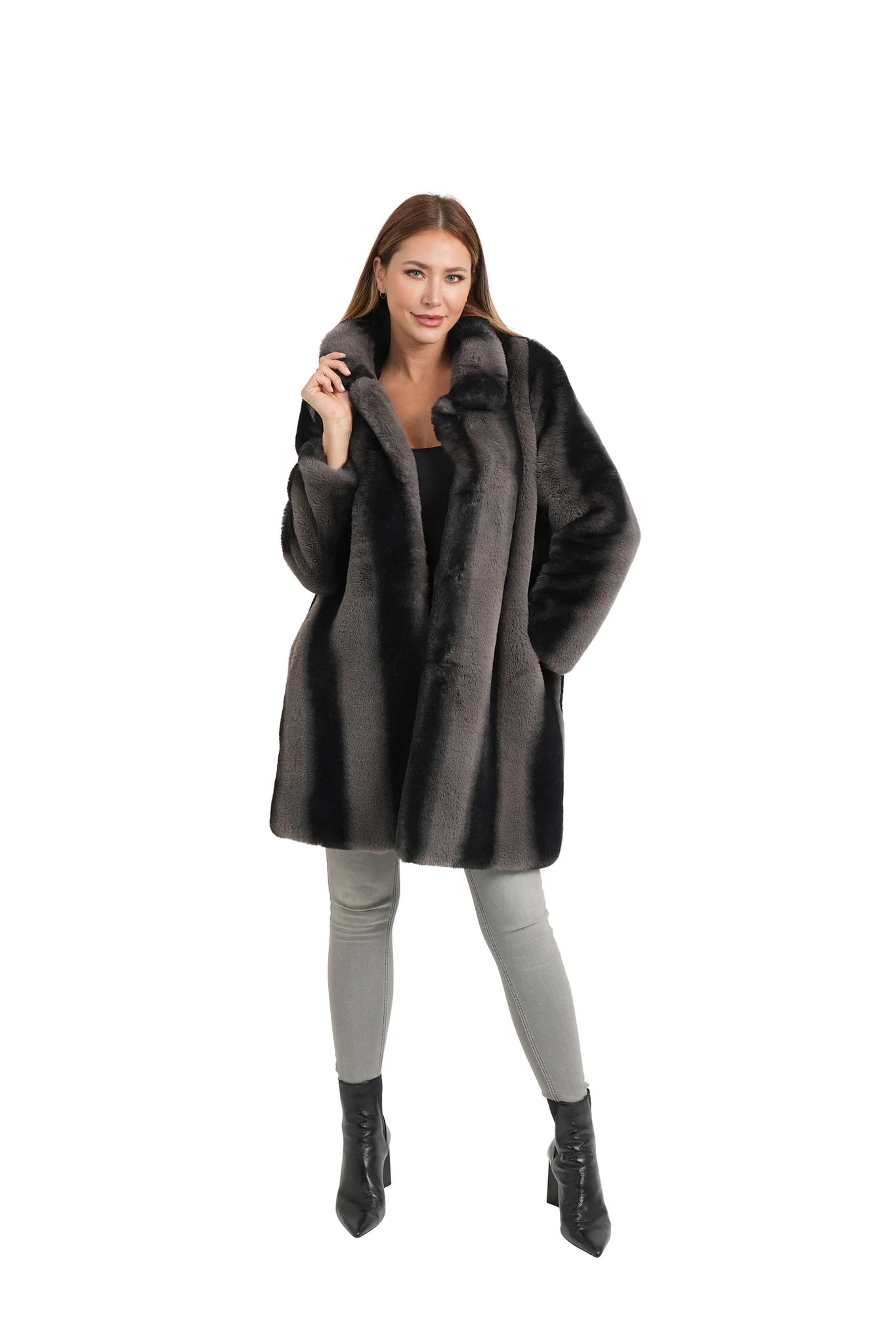 Mason faux fur coat, stand collar, hidden hook & eye closure, slit pockets on front,